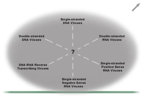 Viruses are nothing more than a segment of genetic material locked in a tiny shell. They have no cells, do not eat, and depend on host cells from other Domains to reproduce. As such, they pose many questions: How did they originate? How should they be classified? Are they even alive at all? The genetic material in a virus can be RNA or DNA, can be one strand or two (like a latter), and copied (transcribed) in either a 'positive' or a 'negative' direction. The 'shell' (capsid) is a protein capsule built by the virus' genetic material. It can be spherical or helical/tubular. All viruses reproduce the same way. They attach to a cell of one the other Domains. They inject their genetic material into it (or allow themselves to be engulfed). The 'hijacked' host cell then inadvertently copies (transcribes) the virus' genetic segment the same way it transcribes its own genetic DNA/RNA code. The host cell produces numerous copies of the virus, which rupture the cell and spread out to infect other cells. All viruses are parasites; many are pathogens. They infect almost every living thing on earth. They have killed hundreds of millions of humans in the past and continue causing disease today. Viruses cause the common cold, smallpox, AIDS, herpes, Ebola, and many others. They are linked to other illnesses also. Nevertheless, viruses are crucial to modern molecular and cellular biology. They are simple 'tools' that researchers use to penetrate, investigate, and manipulate the genetic code of cells. Viruses have allowed us to discover invaluable information about the cells of living things. |