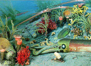 molluscs dominate Ordovician Seas (Image:John Sibbick) |