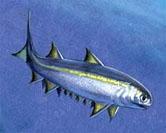 Climatius (left) a Silurian acanthodian or 'spiny shark' was among the first fish with jaws. (Image: D. Paramonovs) |