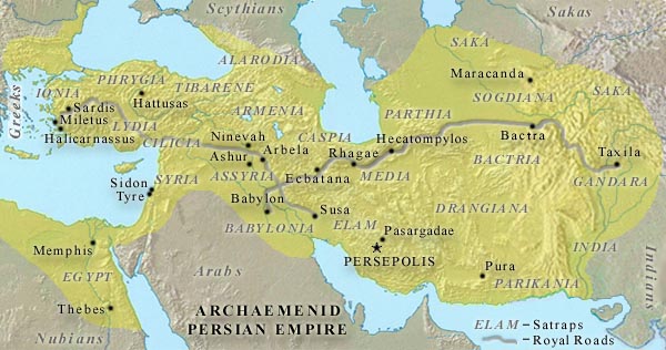 The Archaemenid Persian Empire at its greatest extent at the death of Darius the Great -- 486 B.C.