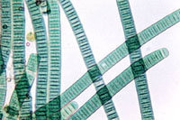 Green cyanobacteria took almost a blllion years to create our oxygen atmosphere. (Source: M. Clayton, Univ. WI, Madison) |
